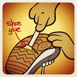 I was complaining to my Grampa the last time it looked like I was going to have to replace my runners once again and he took a look and said, “All you need is some shoe glue.”