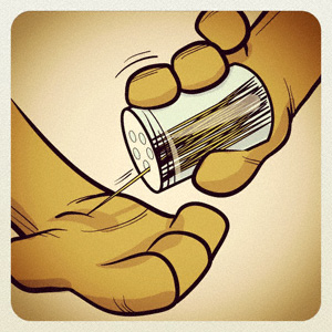 For years we’ve kept our toothpicks in an empty spice bottle and snap the plastic shaker lid back on. When you need a toothpick you can just shake one out without touching all the other toothpicks in the bottle.