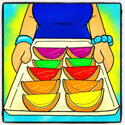 The ladies were thoroughly impressed, but Judy complained that she had spilled some jello juice on her shirt when she was making them and she was afraid that it would stain.