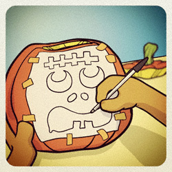 Now it’s time to start on your masterpiece. There is two ways of getting the finished pattern on to your pumpkin. My first choice is tracing paper. You tape the pattern to the pumpkin with the tracing paper face down on to the pumpkin. Make sure the pattern is straight and where you want it. Then you take a pen and trace your pattern making sure that you are pressing hard enough for the tracing paper to leave a dark line on the pumpkin. The second way to get the pattern on to your pumpkin is to tape your pattern on, and then use a push pin to go around all the lines. The pushpin makes tiny holes that you can follow after you take off the pattern.