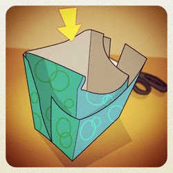 Then I cut where I had traced so both sides of the box looked the same. I folded the side of the box that I cut at the top so it had a bend.