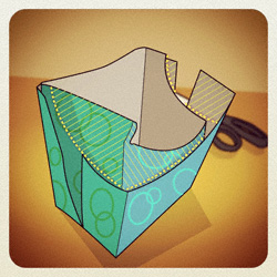 The tissue box is already pretty. That means I don’t have to decorate it to make it look nice. I just have to make it fit the paper.