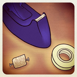 For example, when one of the arms from the little plastic roller from our scotch tape dispenser broke, I discovered that a cork was the right size to go into a roll of tape. All I did was cut it to fit into the dispenser, and then put a screw into the middle of each end so that they would slide into the slots. That fix has worked for years.