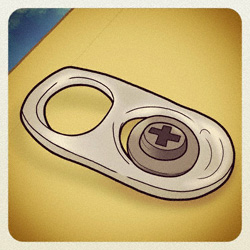 When My Sweetheart needed some picture hangers, I asked the kids for a couple of the pop can tabs they’ve been saving. All you do is use a small screw to attach the bottom part of the tab to whatever you need to hang. If you want a string type hanger, you put a pop can tab on each side of the frame and attach your string to the tabs, or you can on the wall directly from the tabs.