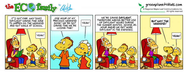 Daylight Saving - Eco Family Comic Strip Friday, March 10, 2017 |